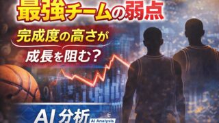 結論:山王の弱点は「強すぎる完成度」山王工業は高校バスケ界の頂点に立つチームであり、個々の能力・戦術・経験すべてにおいて高い完成度を誇る。しかしAI的に分析すると、その強さの裏には明確な弱点が存在する。👉 完成されすぎていること=長期的な成...